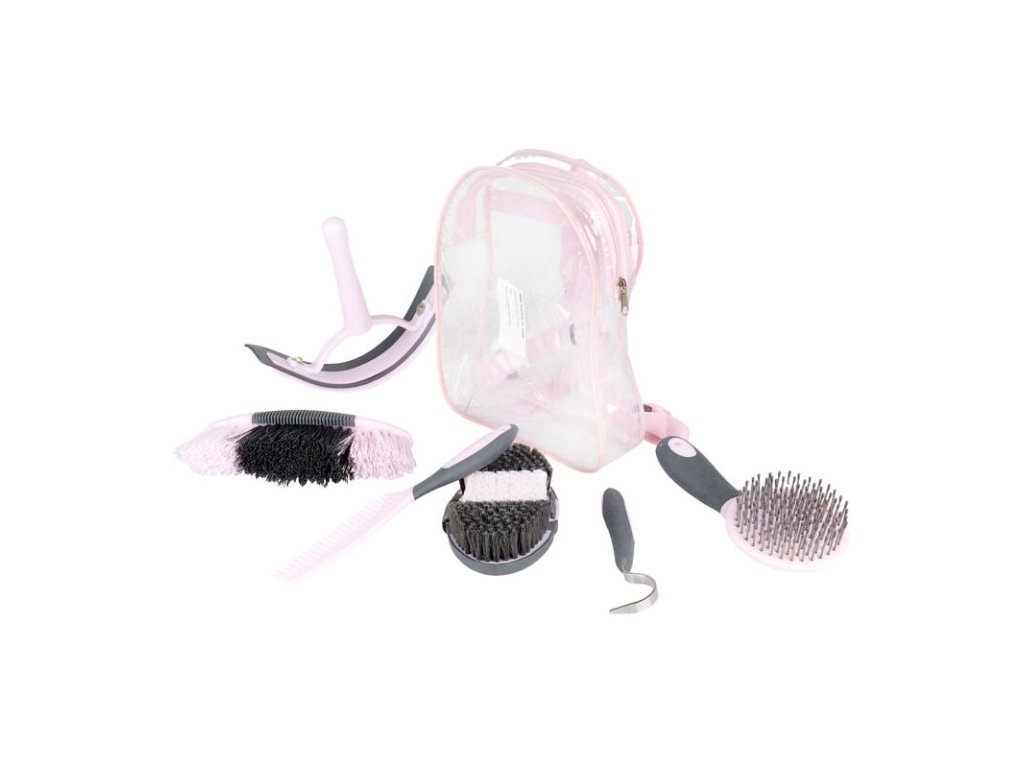 Nová sada pro úpravu vašeho koně. Dodává se v průhledném pvc batůžku na zip. 6 různých a užitečných nástrojů pro péči o koně v jedinečných barevných kombinacích.