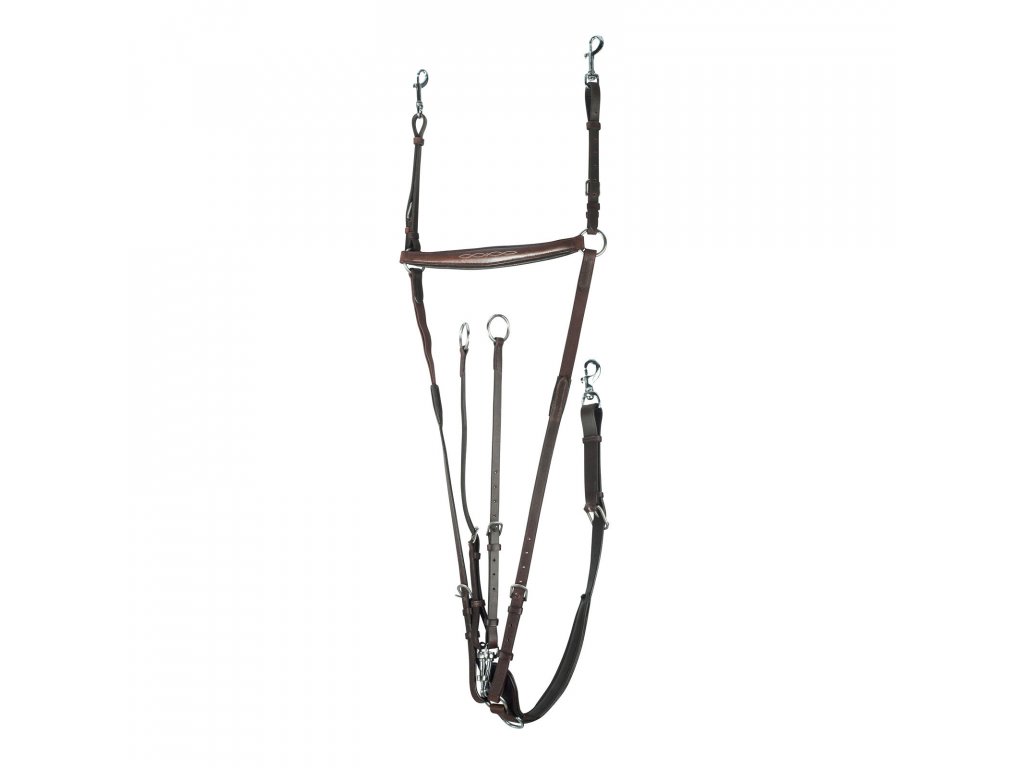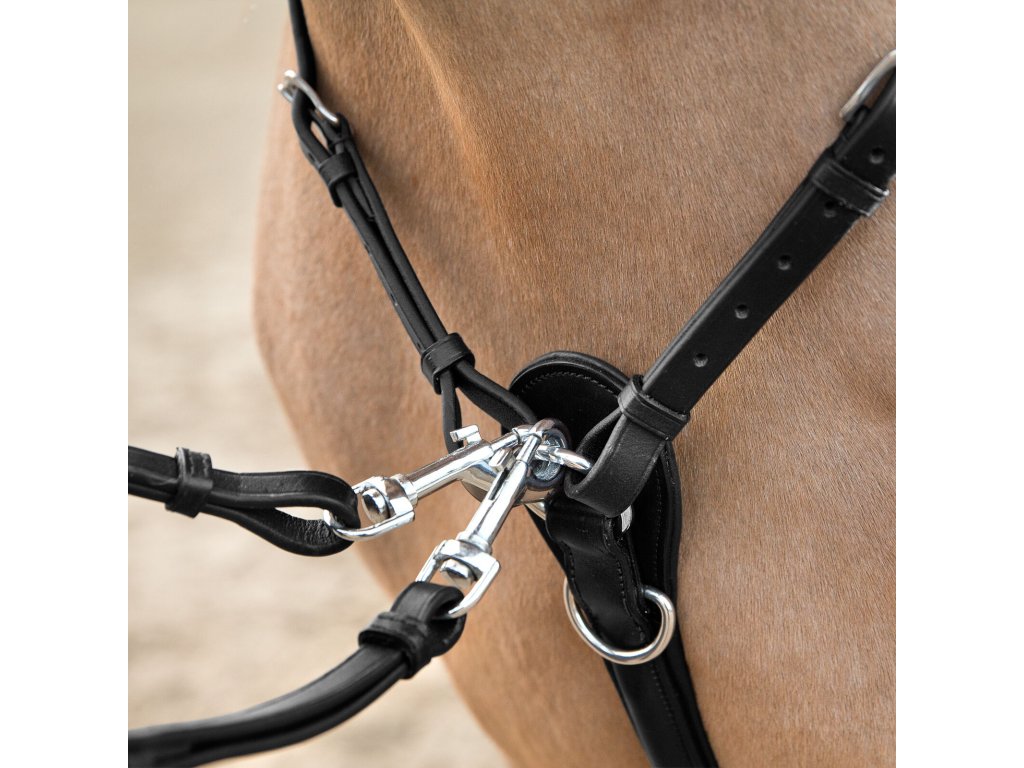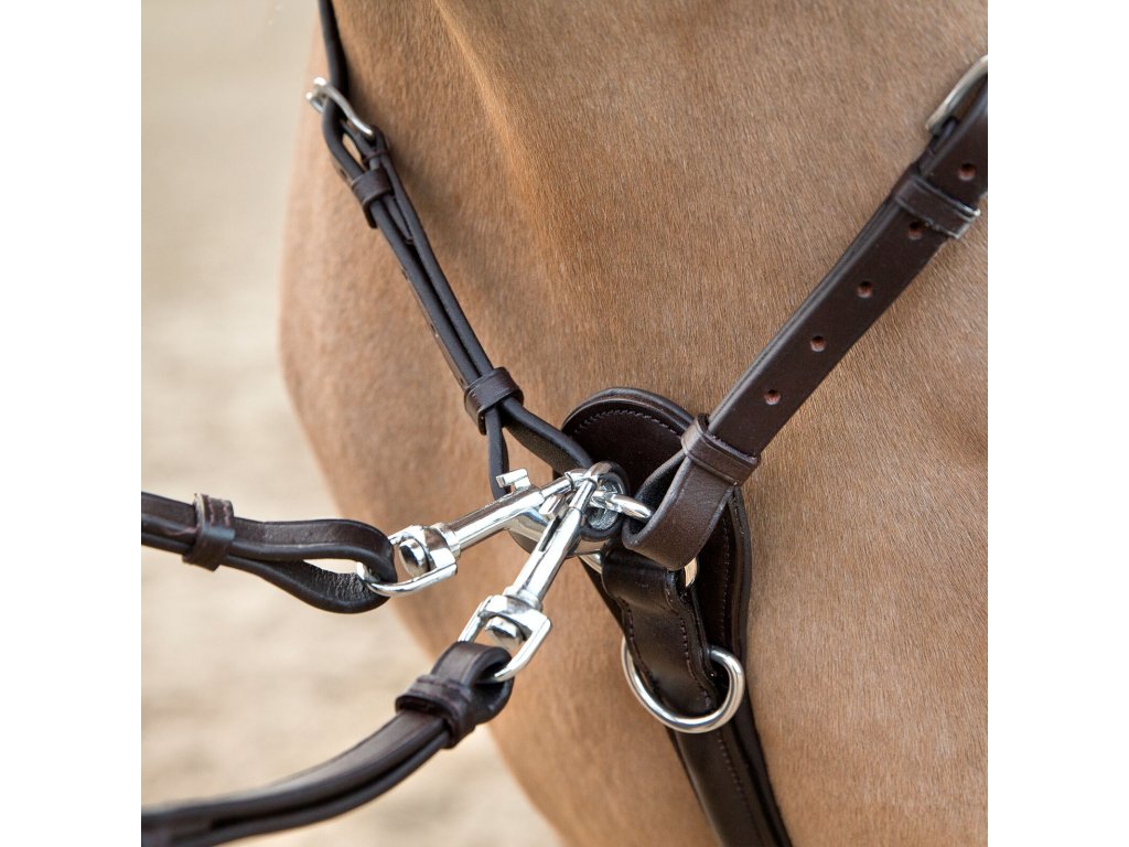Vyberte si snadno použitelný martingal a tříbodový poprsník s touto vysoce kvalitní kombinací. Vaše sedlo se neposune a váš kůň bude udržovat hlavu a krk v klidu při používání tohoto kvalitního komba. Vyrobeno z kůže s karabinou pro snadné sejmutí.