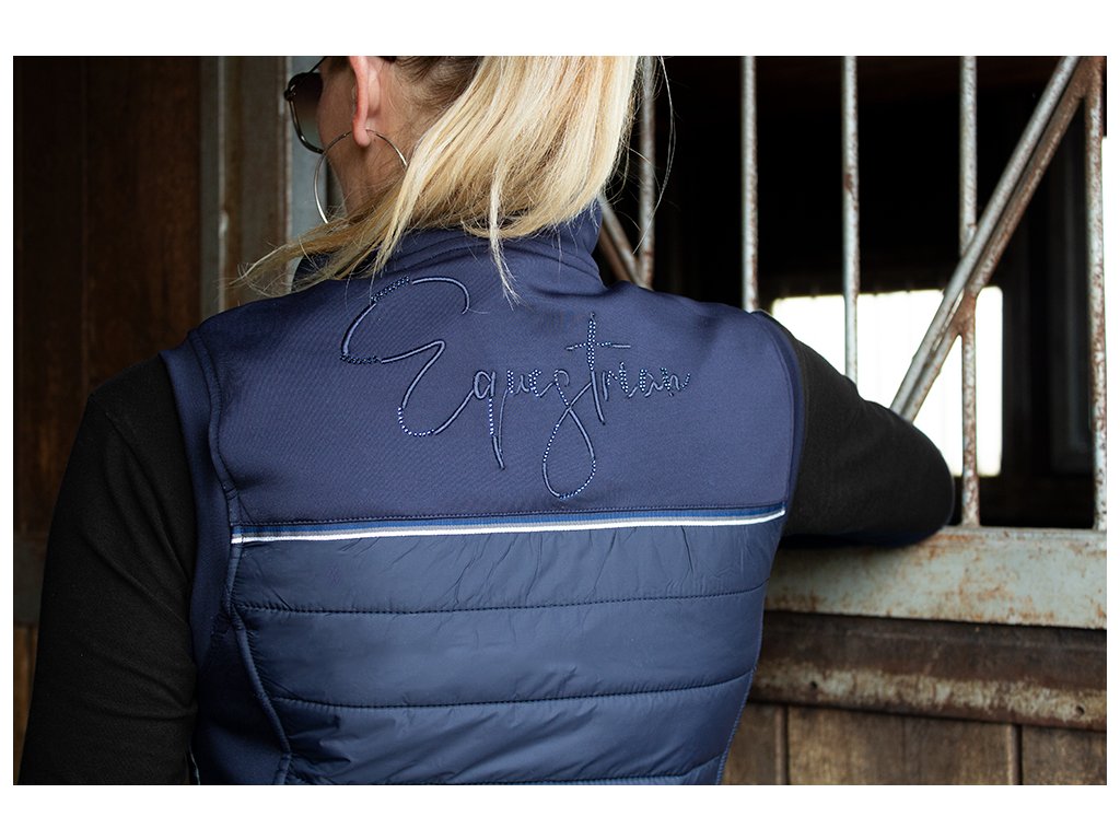 Vypasovaná dámská jezdecká vesta s logem Kentaur - lehce prošívaná. Po bocích je pružná, aby se přizpůsobila každé postavě. Prodyšná a velmi příjemná vesta s celoročním využitím. Dvě přední kapsy se zapínáním na zip.