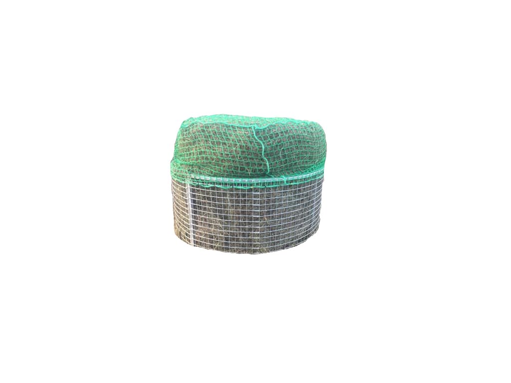 Síť na seno do krmiště kruhového tvaru. Síť zajišťuje  postupné odebírání sena z krmiště a zároveň zabraňuje ztrátám sena. Jednoduchá a rychlá instalace sítě.