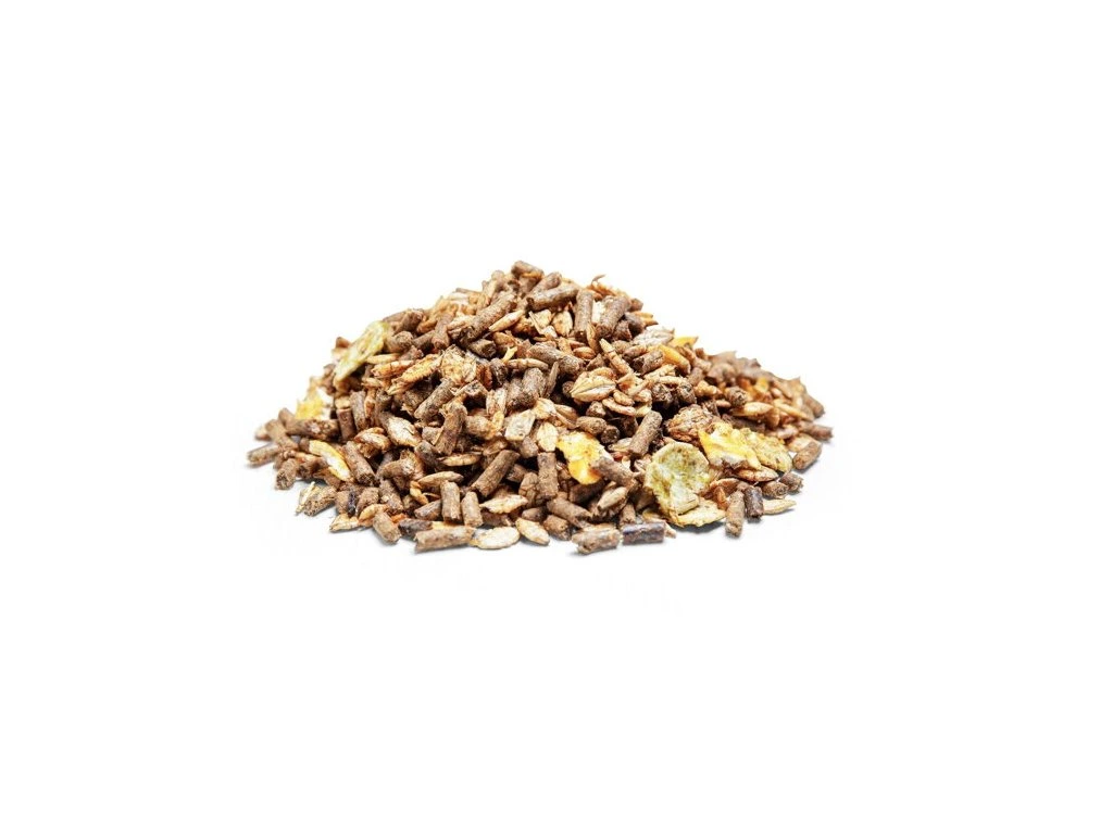 - Menší velikost částic – praktičtější pro koně se zhoršeným chrupem nebo pomalejším příjmem krmiva.