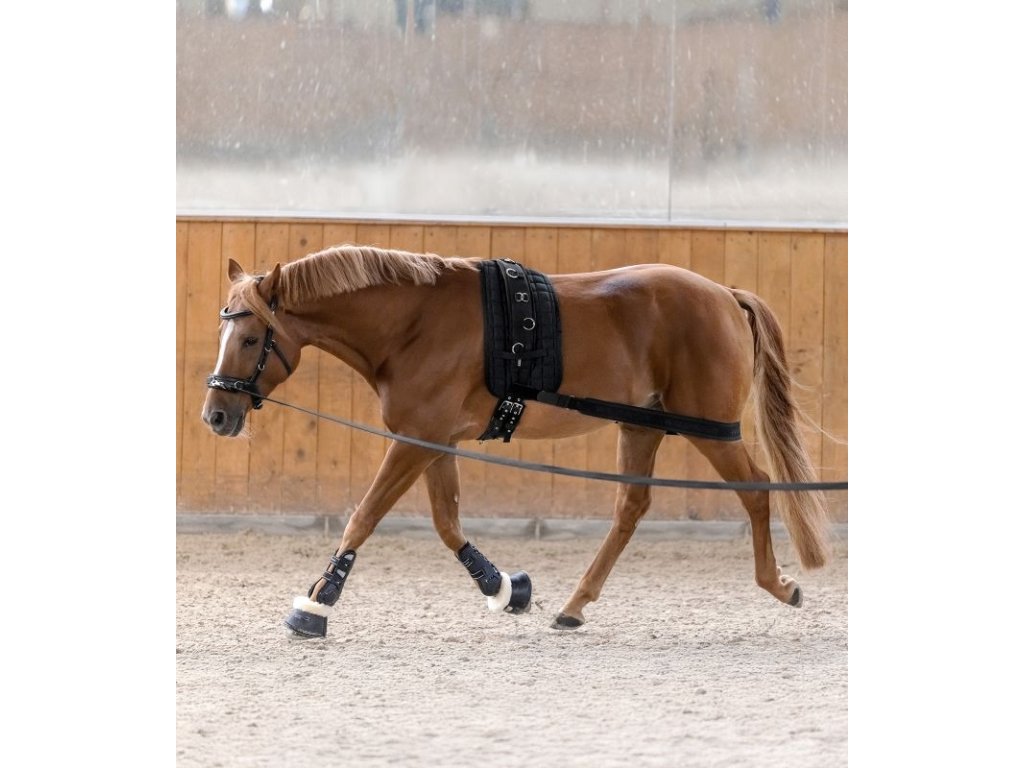 Pomůcka, která byla speciálně vyvinuta pro aktivaci zadních končetin koně. Cílená podpora zlepšuje schopnost koně odrazit se pod těžištěm, což je velká výhoda jak při jízdě, tak při lonžování. Vysoce elastický materiál podpěry zajišťuje optimální přizpůsobení a usnadňuje použití. Díky suchému zipu na obou stranách lze bandáž rychle a snadno připevnit jak na lonžovací obřišník, tak k podbřišníku a délkově upravit tak, aby se individuálně přizpůsobila koni. Lze použít při jízdě nebo lonžování.