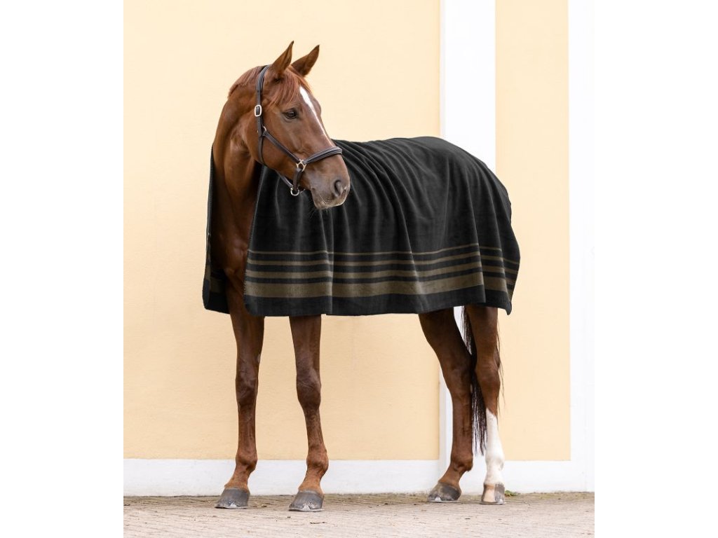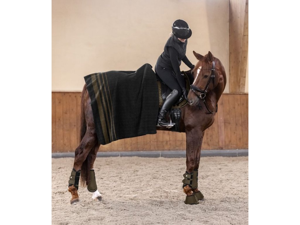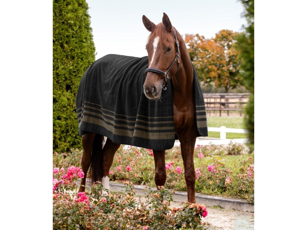 Dokonale padnoucí a stylová odpocovací deka Sölden. Fleecová odpocovací deka Sölden je stylová a poutavá. Silný materiál (330 gr/m) poskytuje optimální teplo pro koně a jezdce v chladných dnech. Fleecová deka Sölden je díky své univerzálnosti skutečným univerzálem. Pruhy na spodním okraji deky dodávají módní nádech.
